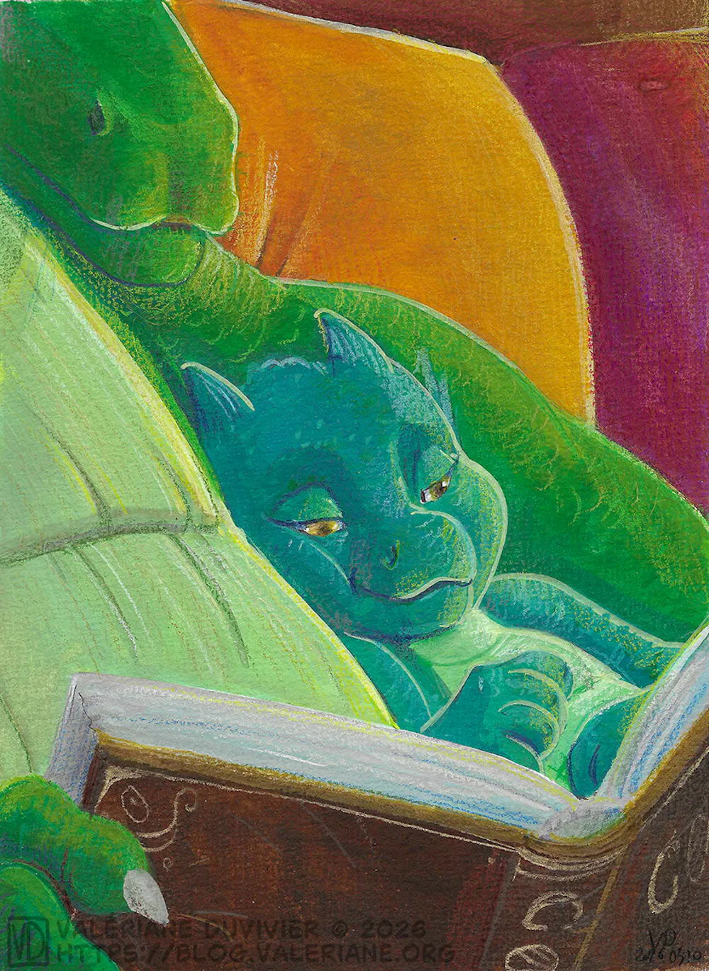 This was a birthday card for a friend who love books, dragons, and my baby dragons reading books.